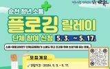 [뉴스맘]순천시는 오는 17일까지 순천시에 거주하거나 활동하는 청년단체(모임)을 대상으로 청년소통+플로깅 릴레이에 참여자를 모집한다고 밝혔다. 이번 청년소통+플로깅 릴레이는 소통 프로그램을 접목한 플로깅으로 청년 단체(모임)간 소통도 하고 걸으면서 쓰레기를 줍는 운동으로 순천시에서 활동하는 청년(모임)을 대상으로 진행된다. 플로깅 릴레이는 우리지역의 생태, 문화, 환경 등 지역문제에 대한 청년들의 관심도 향상뿐만 아니라 청년주도의 공익활동을 통해 지역 애착심 형성과 건전한 청년 문화를 조성한다는 취지로 마련됐다. 플로깅은 5월…