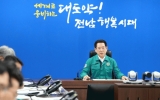 영암 전향윤 기자2024. 05.06[뉴스맘]김영록 전라남도지사가 전남 11개 시군에 호우특보가 발효된 5일 오전 도 재난안전대책본부에서 호우 대비 재난대책회의를 열어 위험지역 예찰활동 강화, 선조치 후보고, 선제적 주민대피 등을 강조했다. 이는 5~6일 사이 전남 전 지역을 중심으로 30~80㎜의 강우가 예상되는 가운데 특히 동부 남해안과 지리산 부근은 150㎜ 이상, 시간당 20~30㎜의 강하고 많은 비가 내릴 것이라는 기상청 예보에 따른 것이다. 이날 재난대책회의에선 농수산·산림 분야 등 주요 실국 대처 상황을 청취하고 상황관리 강화 등 신속한 대응을 지시했…