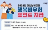 순천 전향윤 기자2024. 04.24[뉴스맘]순천시는 여성농어업인 행복바우처 지원 대상자 6,713명을 선정하고, 문화 · 복지에 사용 가능한 행복바우처 20만원을 지원한다. 시는 매년 선불형 기프트 카드를 지급했던 방식에서 올해부터는 본인 명의 농협카드에 포인트 충전 방식으로 지급 방식을 변경한다. 기존의 선불형 기프트카드 지급 방식은 매년 신규 발급을 위해 금융기관을 방문해야 하는 번거로움이 있었으나, 포인트 지급 방식 변경으로 그간의 불편사항이 해소되었을 뿐만 아니라 카드 사용액, 잔액 등 알림 문자서비스도 제공받을 수 있다. 농협카드를 소유하지 않은 대상…