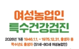 담양 전향윤 기자2026. 03.13[뉴스맘]옹진군은 올해 처음으로 여성농업인의 건강권 보호를 위한'여성농업인 특수건강검진사업'을 본격 시행한다고 밝혔다. 이번 사업은 농작업으로 인해 근골격계 질환 등 직업성 질환에 취약한 여성농업인을 대상으로 건강검진 및 예방 상담을 지원하는 사업으로 여성농업인의 삶의 질 향상과 안정적인 영농 활동을 지원하기 위해 추진된다. 지원 대상은 옹진군에 거주하며 농업경영체에 등록된 짝수년도 출생의 51세부터 80세까지 여성농업인으로, 올해는 총 60명을 대상으로 실시되며, 검진 비용은 1인당 22만 원이며, 이 중 19만8천 원은 보…