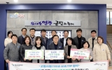 [뉴스맘]영광군 일자리경제과는 지난 27일 고창군 상하수도사업소를 방문하여 지역 간 상생발전을 도모하고 건전한 기부문화 조성을 위해 고향사랑기부금상호 기부를 추진했다. 이번 상호 기부는 강윤철 일자리경제과장과 유성룡 상하수도사업소장의 사무관 교육동기 인연으로 추진됐으며, 양 기관의 직원 24명이 자발적으로 참여하여 고향사랑기부제 활성화에 동참했다. 또한, 영광군과 고창군은 고향사랑기부제 동참 외에도 각종 행사 및 축제에 참여하는 등 지속적인 교류를 통해 우호적인 관계를 이어갈 것을 약속했다. 유성룡 고창군 상하수도사업소장은“먼…