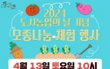 순천 전향윤 기자2024. 04.04[뉴스맘]순천시는 오는 13일 오전 10시부터 순천시 해룡면 소재 신대도시텃밭에서 '2024 도시농업의 날 기념 모종 나눔·체험. 볼거리 행사'를 진행한다고 밝혔다. 이번 행사는 생활 속 도시농업을 알리고 농업농촌 가치 확산, 도농간 소통과 화합의 장을 마련하고자 나눔, 체럼, 볼거리 등 3개의 이벤트로 구성 진행된다. 이번 행사에서는 모종(상추, 가지, 대추방울토마토), 텃밭용품 및 텃밭핸드북을 나눔하고, 도시농업공동체와 함께하는 보리새싹인형 만들기, 넝쿨화분 만들기, 화분갈이 체험도 제공한다. 또한 시민참여 도시농업 사진전…