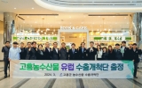 고흥 전향윤 기자2024. 04.02[뉴스맘]고흥군은 농수산물 수출 확대를 위해 공영민 군수를 단장으로 하는 ‘고흥군 농수산물 유럽 수출개척단’ 출정식을 갖고 지난 3월 31일 유럽 출장길에 올랐다. 이번 ‘고흥군 농수산물 유럽 수출개척단’은 유럽 고급 식자재 시장 공략을 위해 프랑스 파리 등 주요 유럽 도시에서 홍보 판촉 행사를 통해 고흥 농수산물의 우수성을 알리고 수출협약을 추진할 계획이다. 특히, 프랑스 코르시카에서 열리는 프랑스 명장 요리사협회 세계총회에 참석해 고흥 유자 홍보 프레젠테이션을 시작으로 고흥 유자와 고흥 김, 고흥 곡물당 시식회, 고흥 유자음…