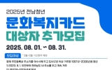 여수 전향윤 기자2025. 08.04[뉴스맘]여수시는 ‘2025년 전남청년 문화복지카드 지원사업’ 대상자를 8월 한 달간 추가 모집한다. ‘전남청년 문화복지카드 지원사업’은 지역 청년에게 연간 25만 원의 문화복지비를 지원해 문화 향유 기회를 확대하기 위한 사업으로, 2022년부터 시행되고 있다. 여수시는 올해 상반기 16,649명의 청년을 대상자로 선정했으며, 이번 추가 모집을 통해 상반기에 신청하지 못한 청년 2,203명을 추가로 선정할 계획이다. 신청 대상은 2023년 8월 1일 이전부터 전남 도내에 2년 이상 주소를 두고 있는 1997년부터 2006년 …