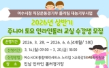 여수 전향윤 기자2026. 03.12[뉴스맘]여수시가 지역 유소년을 대상으로 ‘2026년 상반기 주니어 토요 인라인롤러 교실’을 운영하고 오는 3월 16일부터 20일까지 수강생을 선착순 모집한다. 이번 프로그램은 관내 유치원생과 초등학생 50명을 대상으로 진행되며 여수시청 직장운동경기부 롤러팀 선수들이 재능기부 형식으로 직접 지도에 나선다. 참가자들은 기본적인 롤러교육과 기초기술을 배우고 인라인롤러 주행 능력을 향상할 수 있는 다양한 기술을 익히게 된다. 신청은 수강을 희망하는 유치원·초등학생 보호자가 여수시OK통합예약시스템을 통해 신청할 수 있다. 재능기…